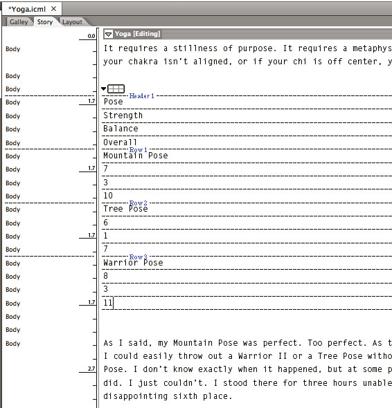 När du väljer Redigera > Redigera i Textbehandlaren visas tabeller och deras innehåll i Textbehandlaren. Du kan redigera tabeller i Textbehandlaren.