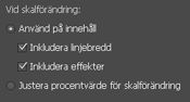 Om du till exempel skalförändrar en fyrpunktslinje med 200 % när det här alternativet är markerat blir linjebredden åtta punkter. Om du avaktiverar det här alternativet dubbleras objektets storlek men linjebredden är fortfarande fyra punkter.