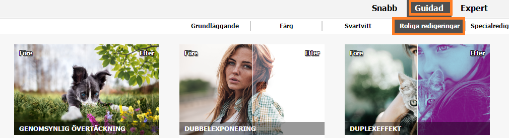 - Läget Guidad: Specialredigeringar