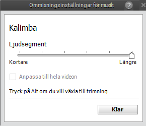 Om det här alternativet markeras ändras längden på musikklippet för att matcha längden på videon på tidslinjen. Det förlänger/förkortar längden på den högra sidan av klippet.