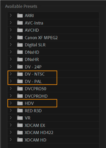 For HDV footage, create and save a custom preset with settings to match the settings of your footage. For more information about creating custom sequence presets, see Create a custom sequence preset.