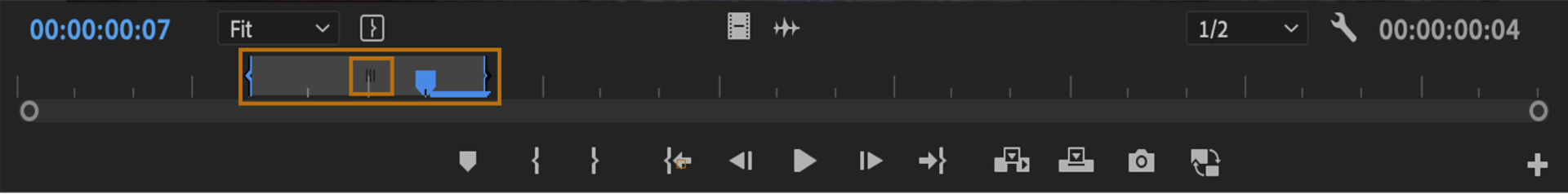 1. Hover over the In or Out Grip    tool at the center of the area between your set In and Out points until the cursor turns into a hand.