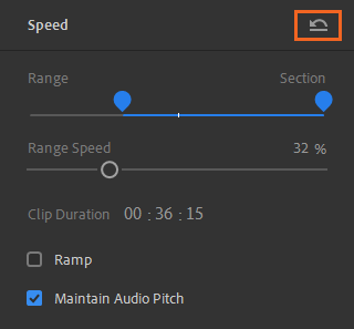 Om klippet innehåller ljud sänker en långsammare uppspelning av klippet tonhöjden på det och när klippet spelas upp snabbare höjs tonhöjden. För att bevara den ursprungliga tonhöjden på ljudet är kryssrutan Behåll tonläge för ljud aktiverad som standard. Om du inte vill bevara tonhöjden inaktiverar du den här kryssrutan.