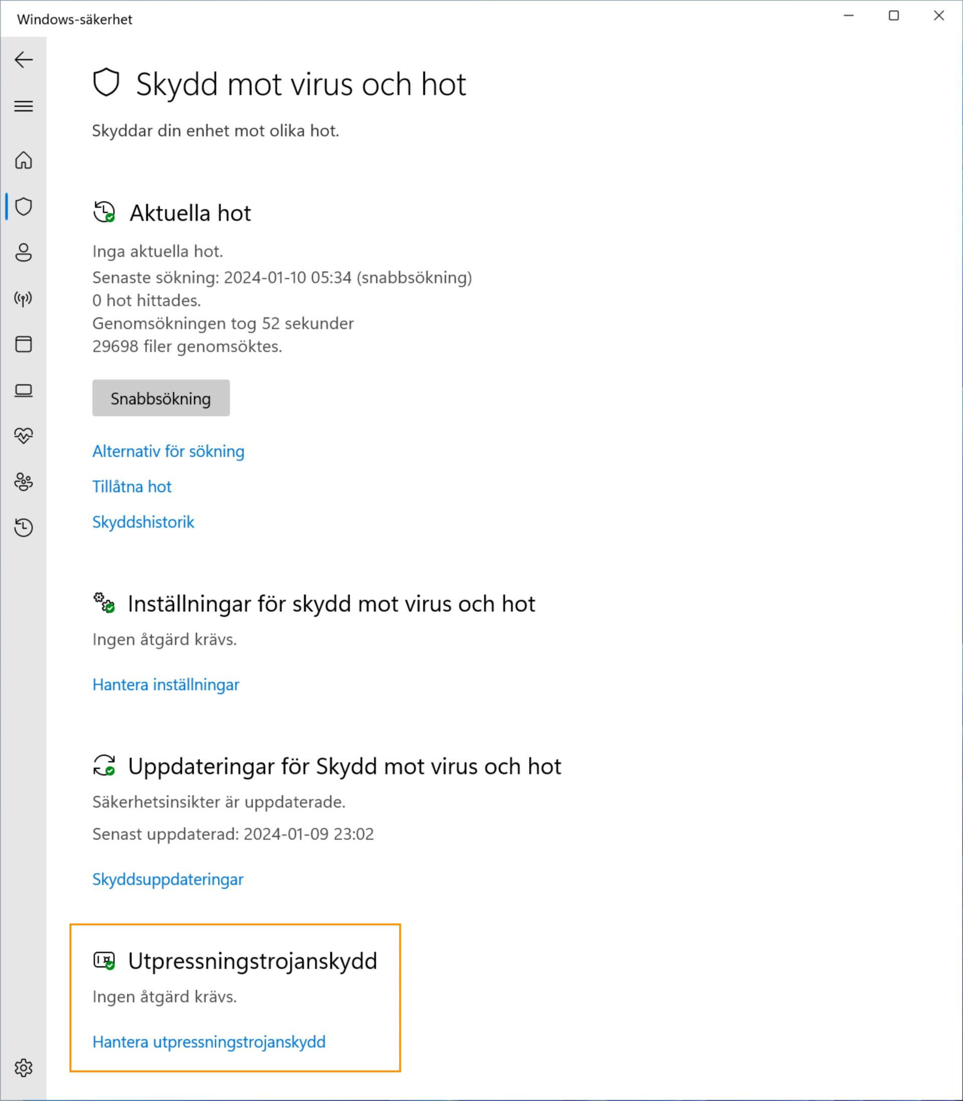 Välj Utpressningstrojanskydd under Skydd mot hot och virus.