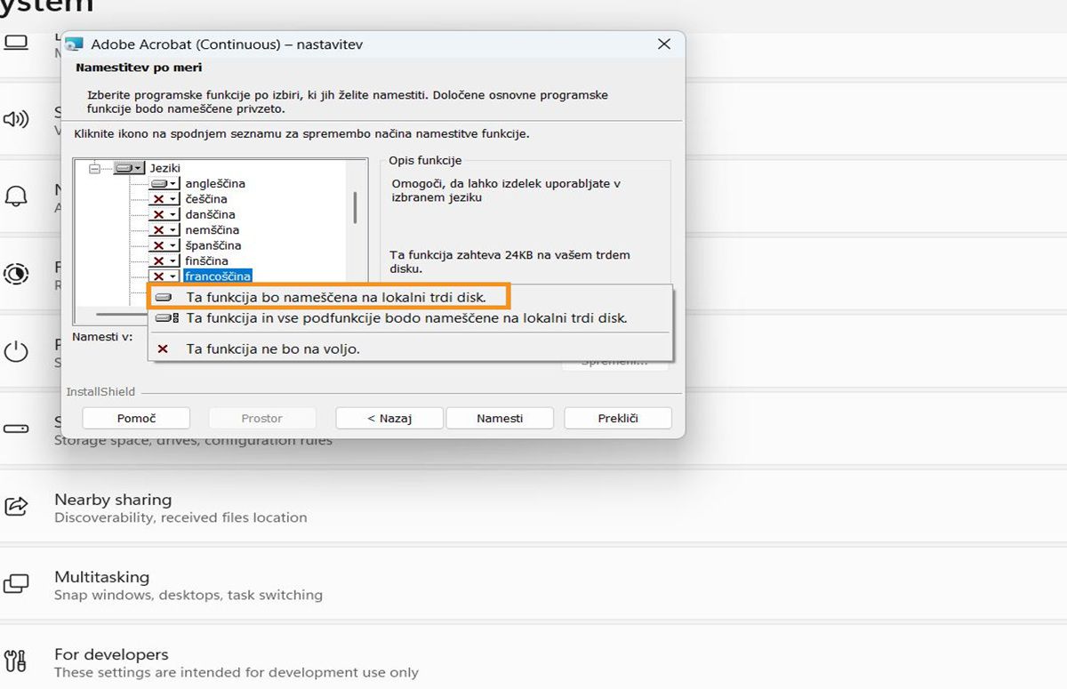 Izberite Ta funkcija bo nameščena na lokalnem trdem disku.
