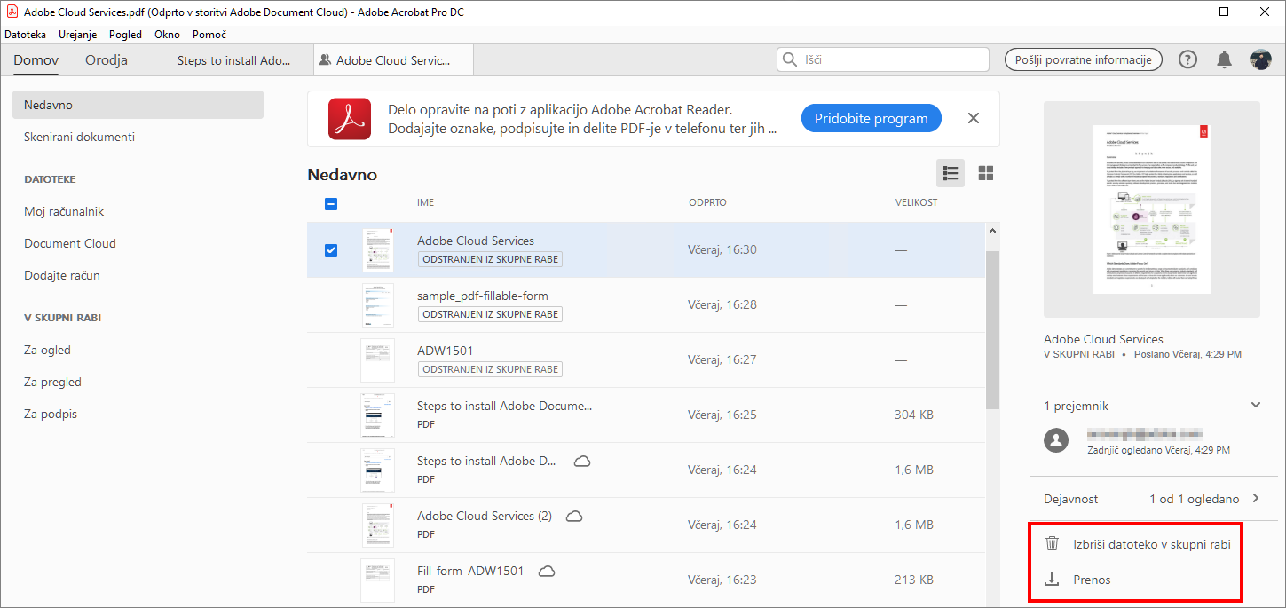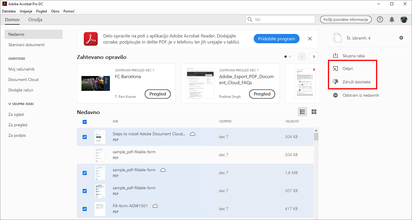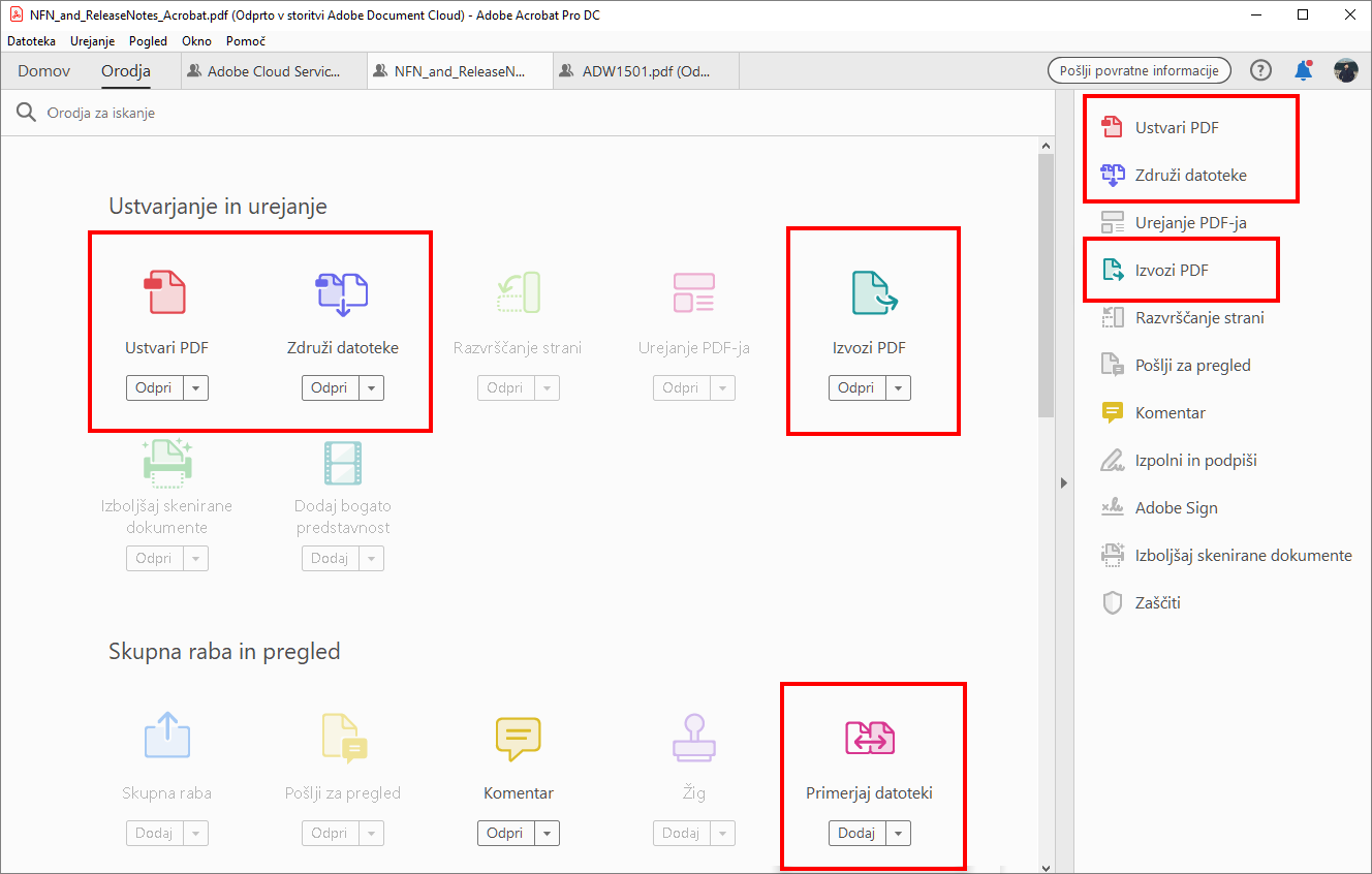 Novosti v programu Adobe Acrobat za namizne računalnike