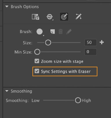 1. Enable the Sync settings with Eraser check box in the Brush tool (B).
