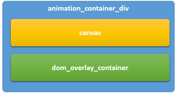 Do note that the previous figure illustrates the order in which the elements are added in the DOM. Thus the dom_overlay_container div is shown above the canvas.