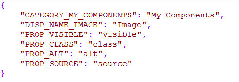 The category string, component display name and property name can be localized. Create a file called strings.json in a folder with the name locale under the components folder. Provide the key-value pairs for all the strings to be localized and use the key in the components.js. For other locales, you need to provide the strings in the corresponding folders under the locale folder.
