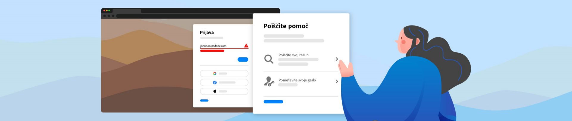 Izberite Pomoč pri prijavi, če želite poiskati svoj račun Adobe. Izberite Pomoč pri prijavi, če želite poiskati svoj račun Adobe. -