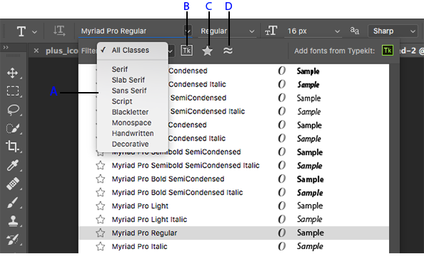 Take the guesswork out of identifying certain fonts and let Photoshop CC do the hard work for you. Thanks to the magic of intelligent imaging analysis, using just a picture of a Latin font, Photoshop CC can use machine learning to detect which font it is and match it to licensed fonts on your computer or on Typekit, suggesting similar fonts.