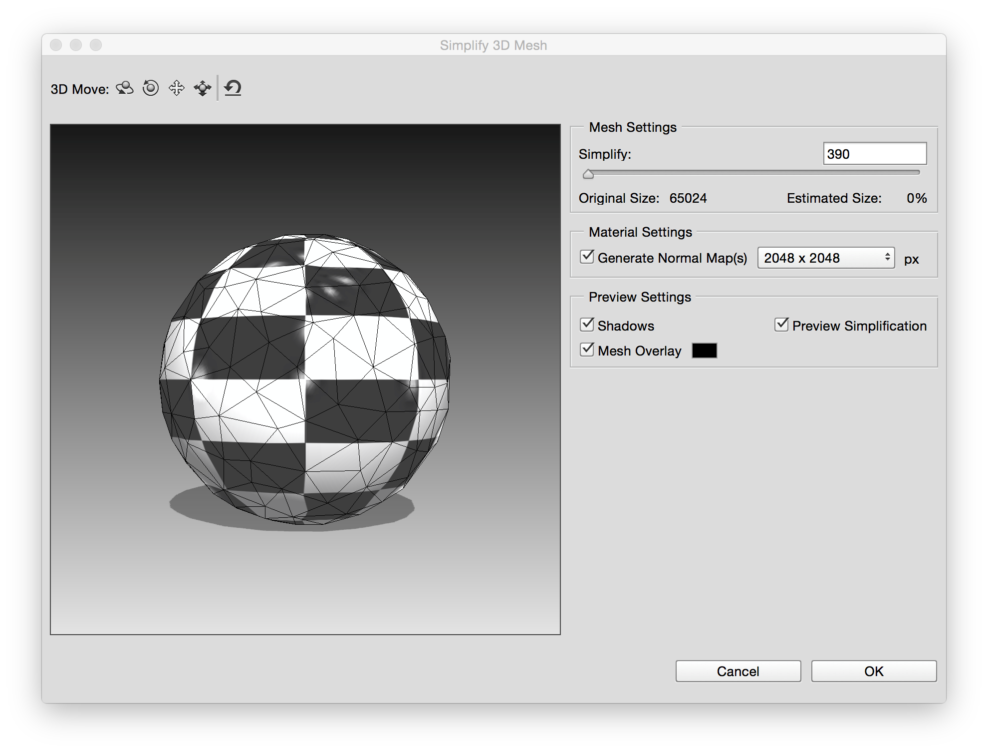 Photoshop Preview of mesh simplification changes