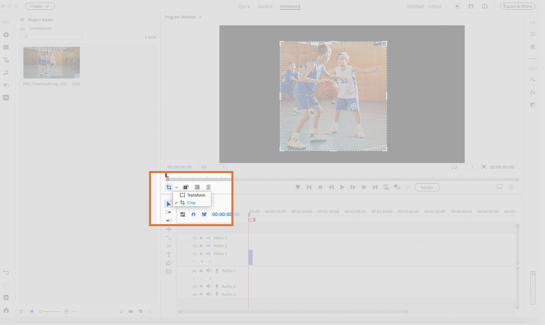 Add the clip(s) to the Timeline, then select the one you want to crop.