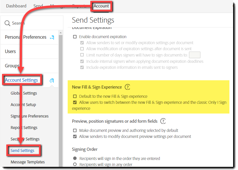 Our Classic Only I Sign functionality continues to be available via a switch for enterprise customers, but will be eventually discontinued in favor of the simplified Fill & Sign experience.