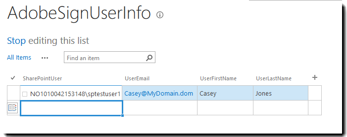 Worth noting is that you can associate email addresses (and thus Adobe Sign access) to SharePoint Users that either don’t have a public email or need to use a different email address than their SharePoint email value. (e.g.: Bob@MyDomain.dom is a SharePoint User, but needs to send agreements using the email value HumanResources@MyDomain.dom)
