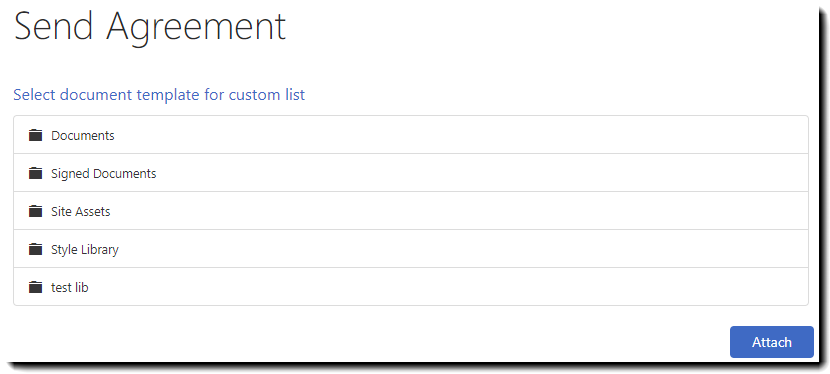 ► For custom lists, always use the designated document template – When enabled, SharePoint remembers the file that you attach, and automatically attaches that file on the next agreement that you create from a list, bypassing the file selection step. Great for when you use the same document multiple times.