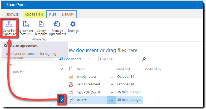 Sending Agreements and getting signatures is what Adobe Sign is all about, and in the SharePoint environment there are three methods to begin that process: