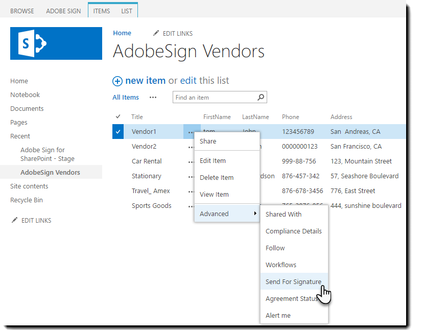 Sending Agreements and getting signatures is what Adobe Sign is all about, and in the SharePoint environment there are four methods to begin that process: