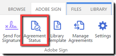 Once an Agreement is sent, tracking its progress is best done on the Agreement Status page, accessed through the Agreement Status icon on the Adobe Sign ribbon.