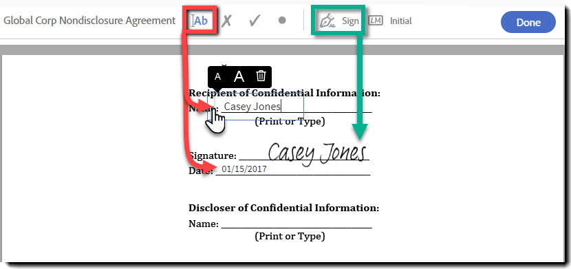 After the document is filled and a signature is applied, Click Done in the upper-right corner of the window.