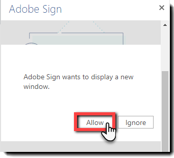 7. After authentication to Adobe Acrobat Sign, you are asked to confirm the access. Click Allow Access