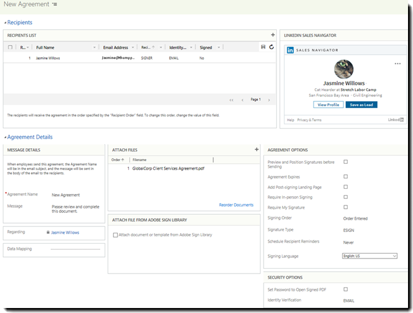 The Sales Hub makes available all of the Adobe Sign functionality for web browsers, tablets, and other mobile devices.