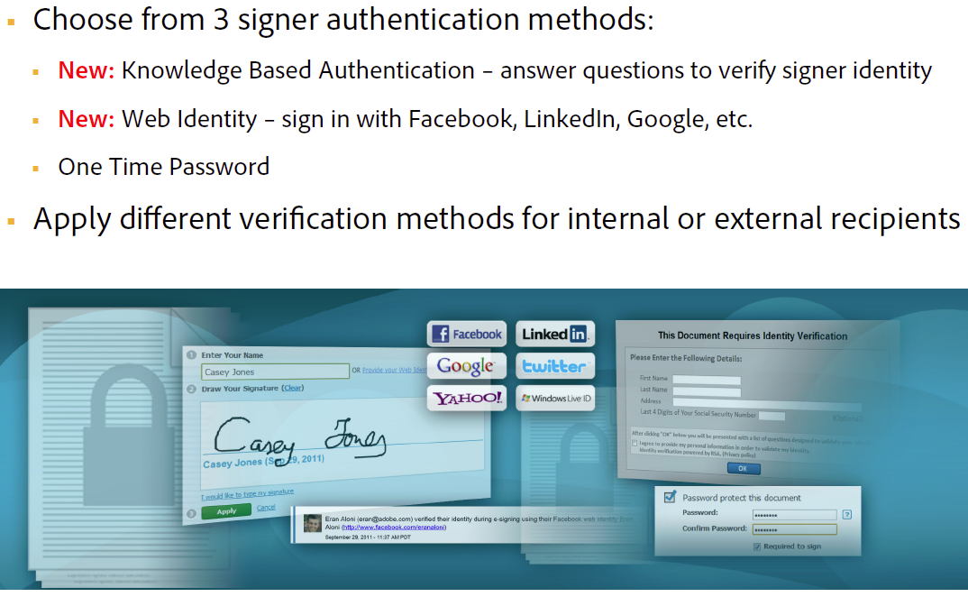 Adobe Sign users can no longer choose Web Identity or Social ID as the identity verification method. However, users can continue to verify signers' identity via password, phone, or knowledge based authentication (KBA).