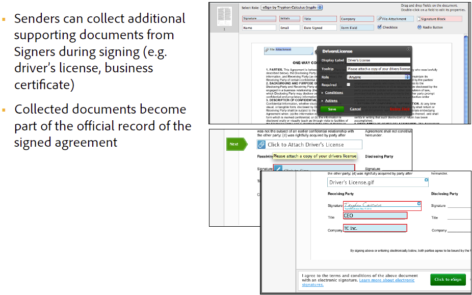 You can send an agreement out for a digital signature. Digital signatures are preferable to electronic signatures in certain regions (such as the EU) and industries (such as pharmaceutical). The digital signatures feature is currently in beta. Contact Adobe Support if you would like to use digital signatures before November 2015, when it will become generally available.