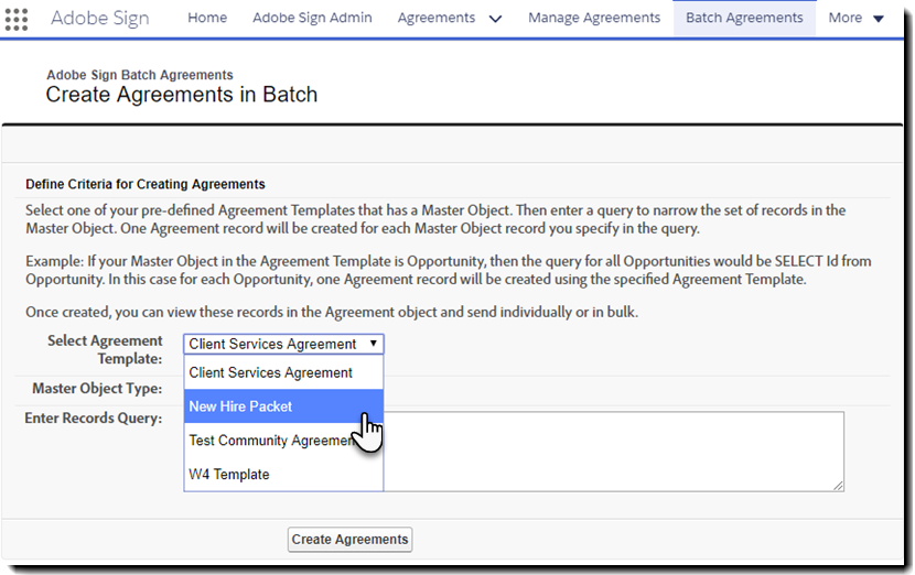 Salesforce agreement templates now have the option to hook into Adobe Sign's custom workflows, allowing you to map complex signature processes in Adobe Sign, and then import that structure into a Salesforce Template: