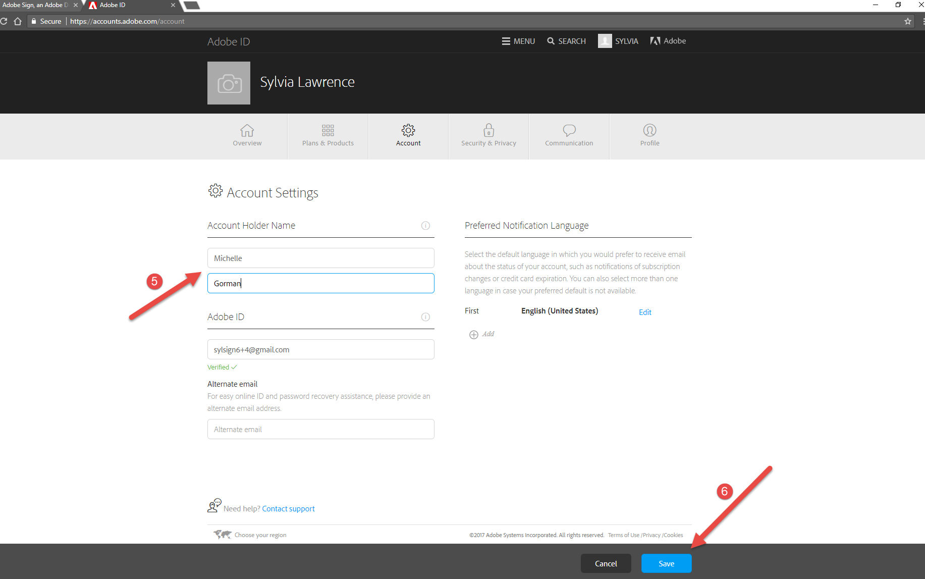 Change your First Name and Last Name.