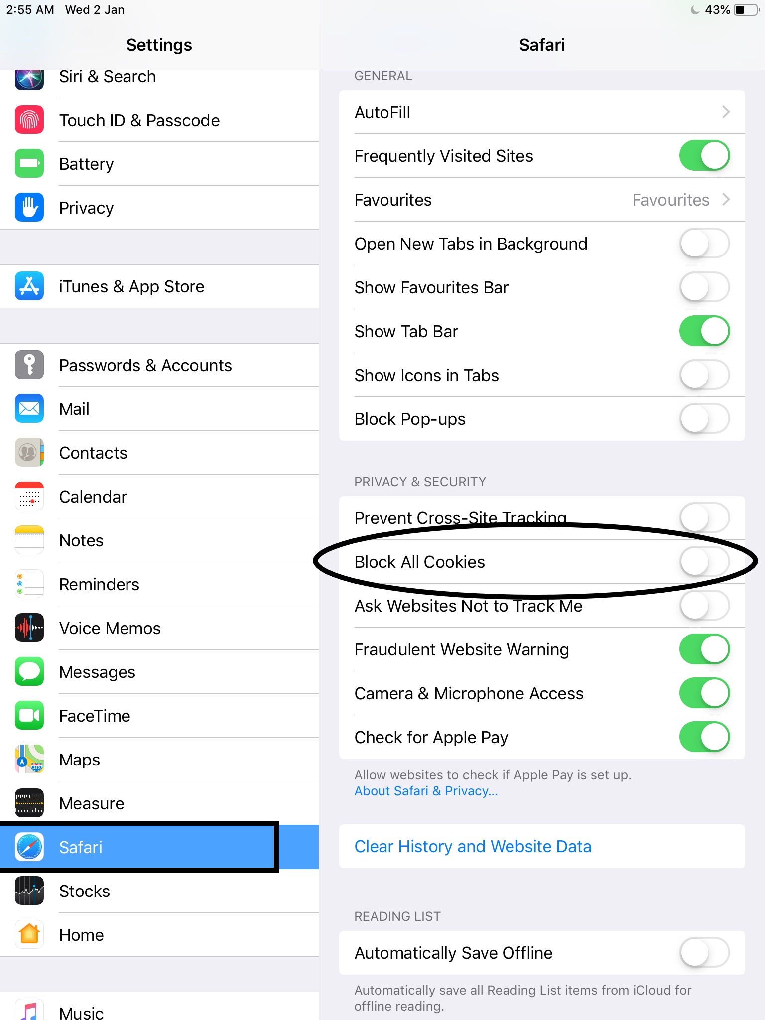 Navigate to Settings > Safari, and then deselect Prevent Cross-Site Tracking.