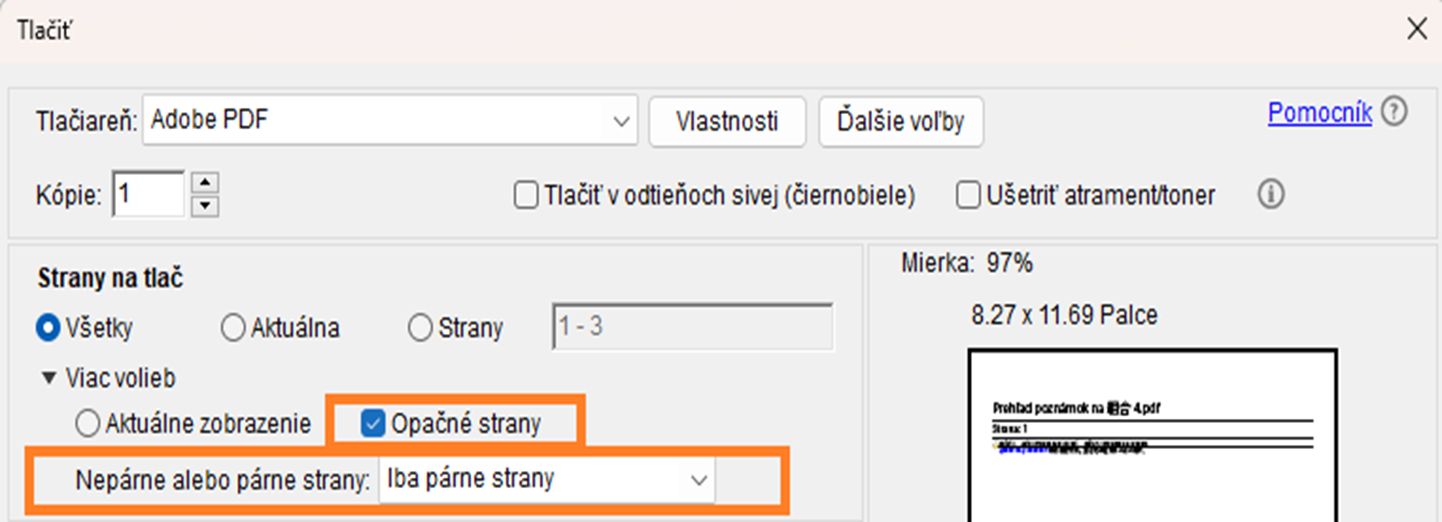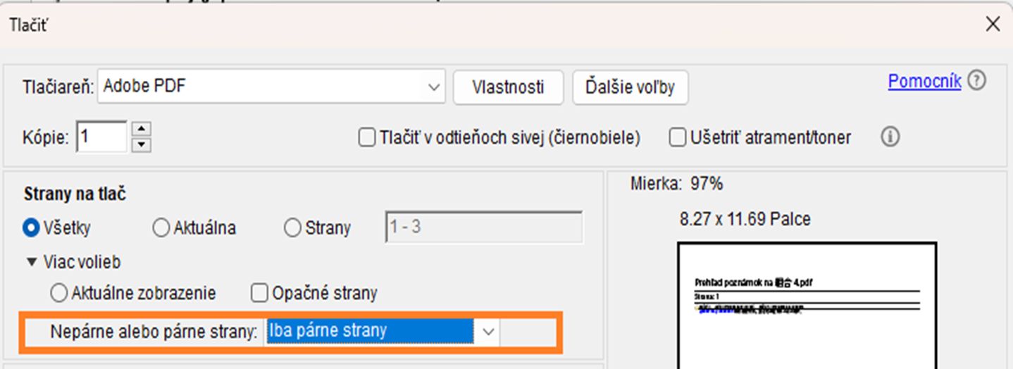 V časti Strany na tlač v dialógovom okne Tlač vyberte možnosť Iba párne strany.