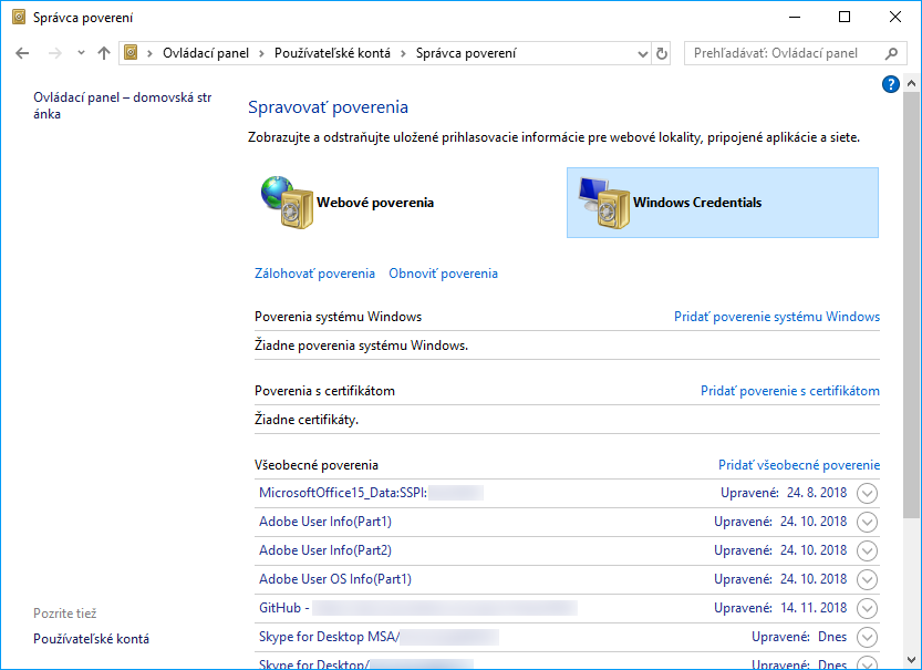 Choďte na Štart > Ovládací panel > Používateľské účty > Správca poverení.