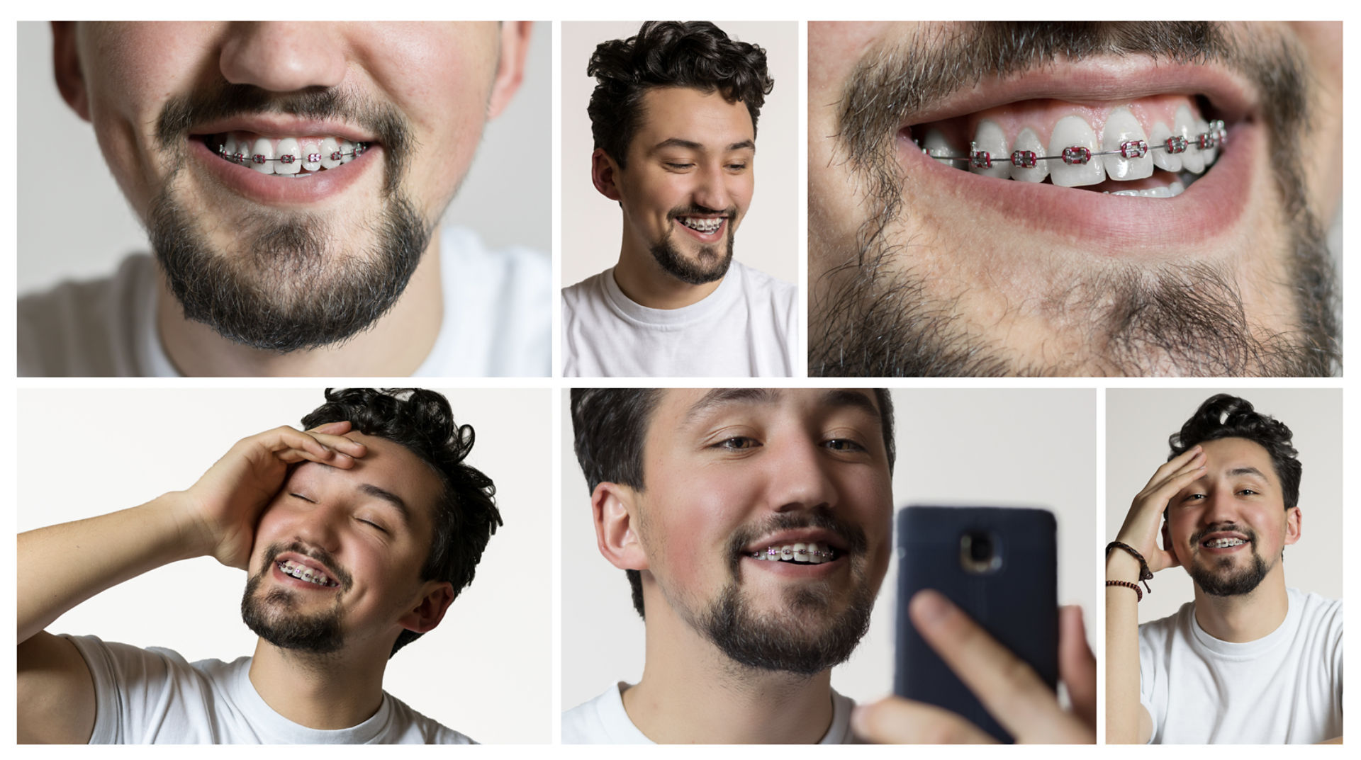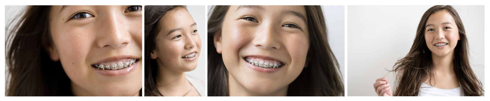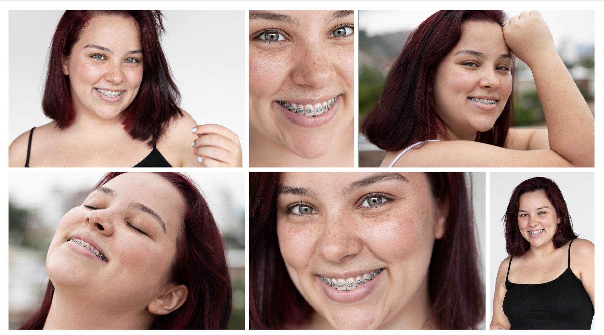Crop: close-up shots of the mouth with braces + medium shots (above the waist) so that the braces are most visible.