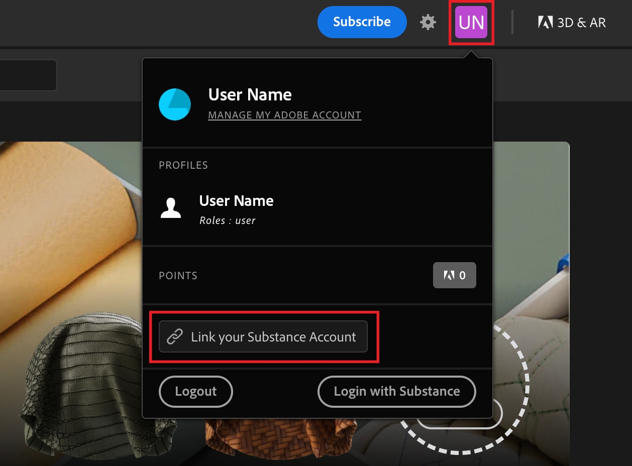 Before September 30th, 2022, your Adobe account could be linked with your Substance account. When you linked accounts, you were able to transfer your assets and/or download points and access them from your Adobe account. To do so, your Substance account had to be eligible too.