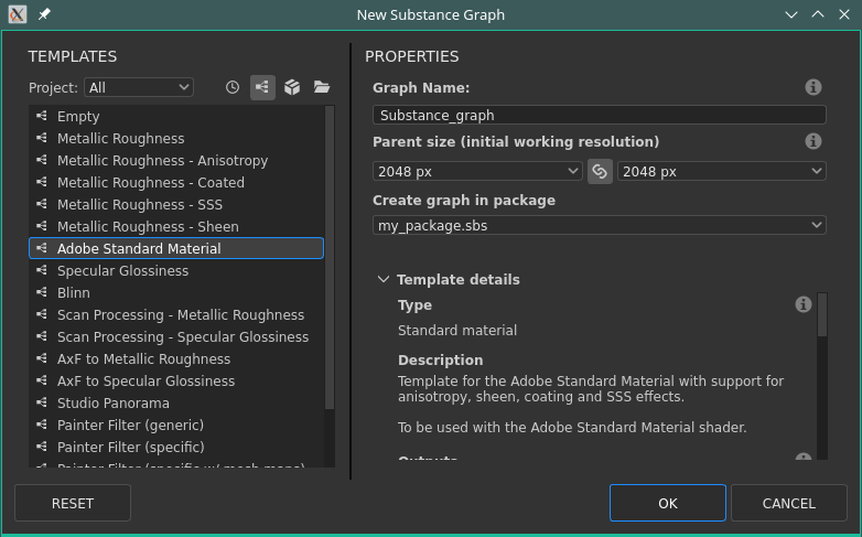 The new graph window has been reworked and now allow to better see the details of a specific template and to create new graph directly into an existing package.