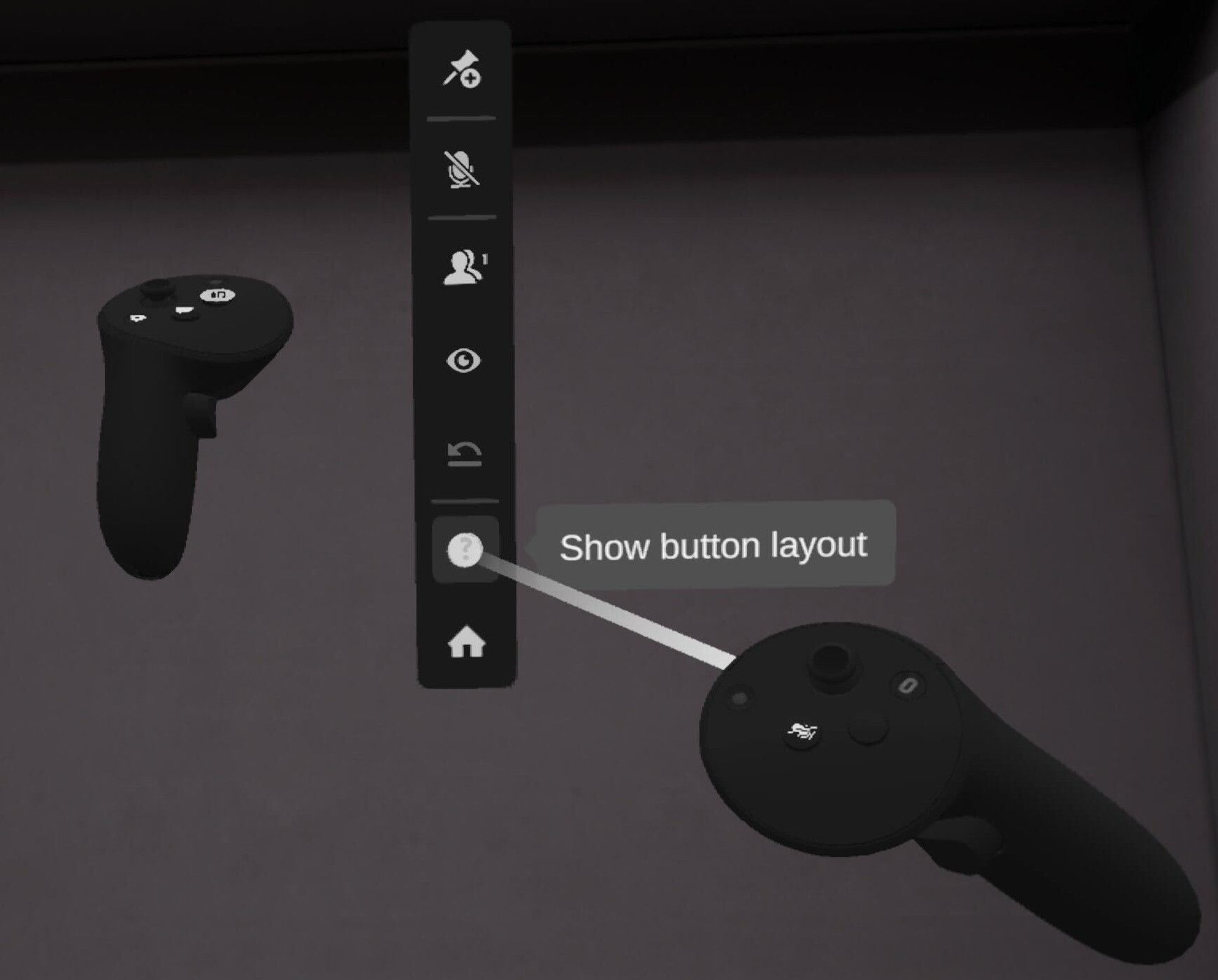 At any point while you're in a scene, you can select Show button layout from the Quick access menu to see labels for each of the controls on your controllers.