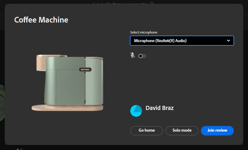 - Toggle whether you will join the review with your microphone muted or unmuted.