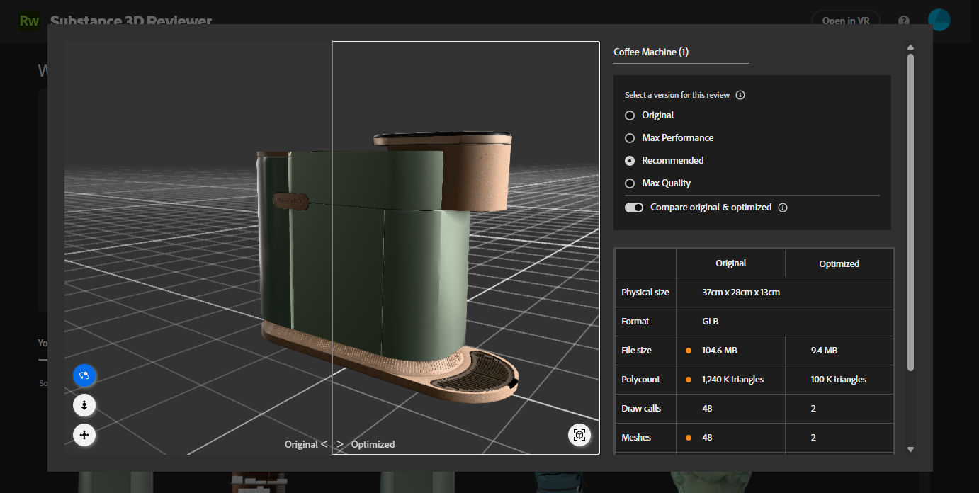 Before you commit to the optimized version of the asset you will have the opportunity to compare it with the original.