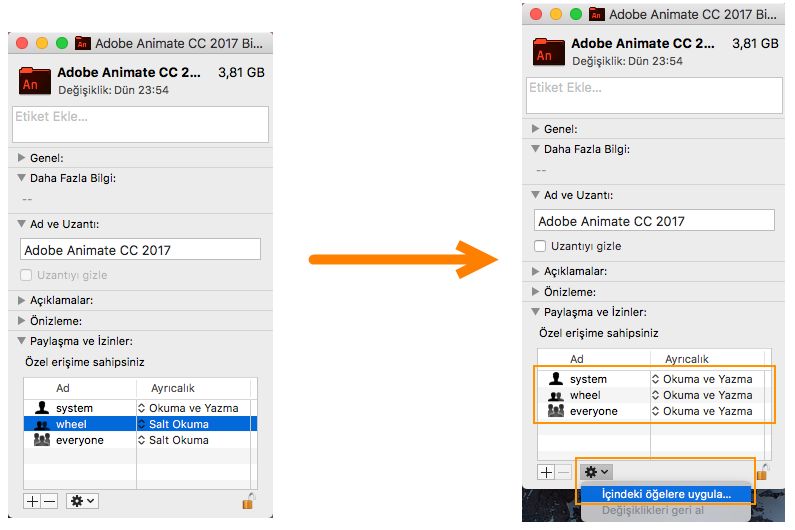 Paylaşım ve İzinler sekmesine tıklayın ve listedeki her bir kullanıcı için Okuma ve Yazma yetkisini seçin.