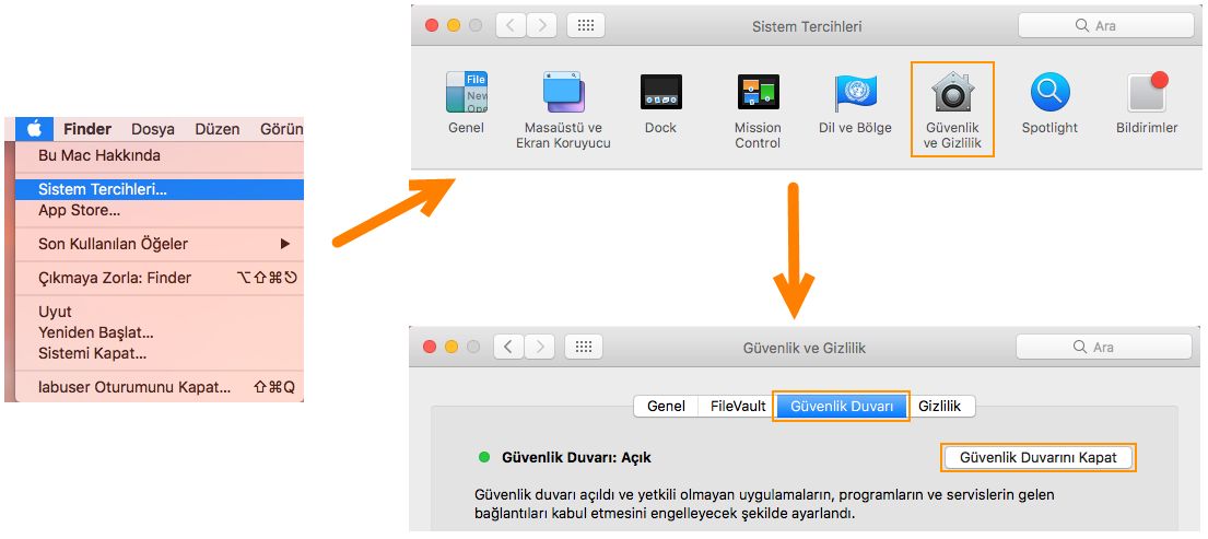 Güvenlik duvarını kapatmak için aşağıdaki adımları uygulayın: