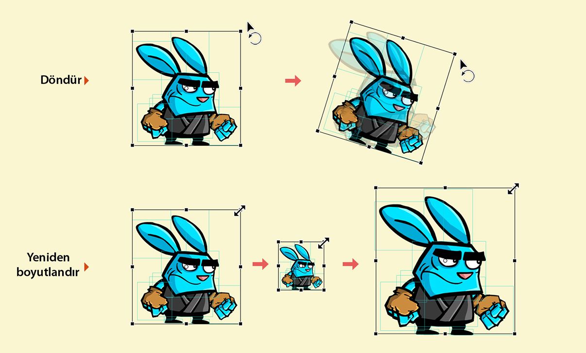 Dönüştürme aracını kullanmaya ilişkin bilgi edinmek için Grafik nesnelerini dönüştürme ve birleştirme makalesini okuyun.