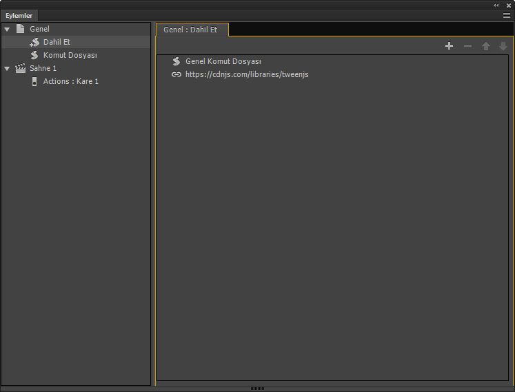 Genel Komut Dosyası bölümü, Animate'te veya harici komut dosyası olarak belgelere uygulanabilir komut dosyaları yazmanıza olanak tanır.