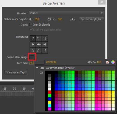 - Arka Plan: Tıklayın ve hareketli grafik sayfasının arka plan rengini ayarlayın.
