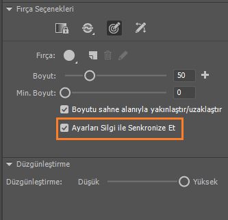 Fırça ve Silgi araçlarında ayarları senkronize etme