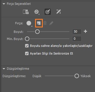Boyut seçeneğini ayarlayarak fırçayı istediğiniz boyuta yeniden ayarlayabilirsiniz.