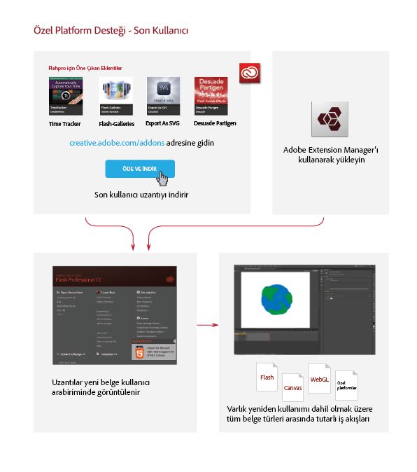 Animate için eklentiler oluşturan bir geliştiriciyseniz eklentilerinizi geliştirmek ve dağıtmak için aşağıdaki iş akışını kullanabilirsiniz: