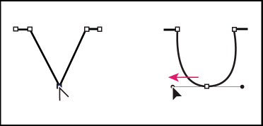Bir köşe noktasını bir düz noktaya dönüştürmek için noktayı seçmek üzere Alt Seçim aracını kullanın, sonra teğet tutamaçlarını yerleştirmek amacıyla Alt tuşunu (Windows) veya Option tuşunu (Macintosh) basılı tutarak noktayı sürükleyin.