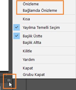 Zaman çizelgesi panelinin sağ üst köşesindeki zaman çizelgesi paneli seçenekler menüsünden Önizleme'yi seçin.