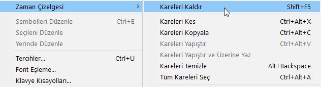 Kareyi veya diziyi seçip Düzenle > Zaman Çizelgesi > Kareyi Kaldır'ı seçin veya kareyi ya da diziyi sağ tıklatın (Windows) veya Control tuşuna basıp tıklatın (Macintosh) ve bağlam menüsünden Kareleri Kaldır'ı seçin.